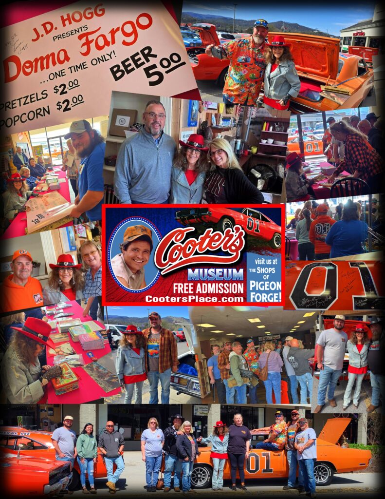 I hope you’re all doing great in every way.  As for us, we’re back in Nashville from our trip to Pigeon Forge, and it was so great to see everyone on Saturday, March 28th, at the NACMAI Awards show and on Sunday at Cooter’s Museum for the autographing and meet and greet.  We had the best time and made a lot of new friends.  Everybody was so nice to us.