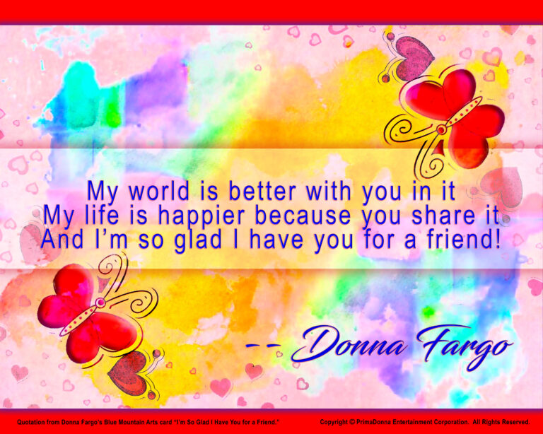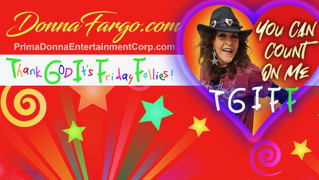 Donna was the first woman in country music history to have back-to-back million-selling singles, with both songs being written by the artist who sang them. She was the first female country music artist to have her own television variety show, The Donna Fargo Show. Besides her platinum-selling back-to-back hits with “Happiest Girl” and “Funny Face,” many hits followed, like…”Superman,” “Little Girl Gone,” “You Were Always There,” “Don’t Be Angry,” “Whatever I Say Means I Love You,” “You Can’t Be a Beacon,” “U.S. of A.,” “Do I Love You,” “It Do Feel Good,” “Somebody Special,” and “Daddy,” to name a few. And who could ever forget the #1 recitation she wrote called “That Was Yesterday.”